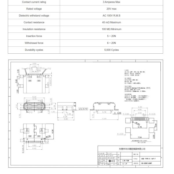 Free Sample USB Type C Receptacle SMT Pins Jack